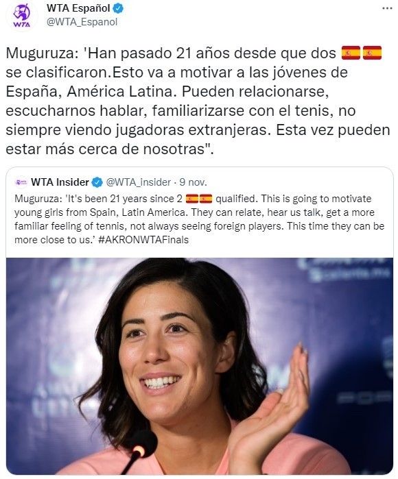 Comenzamos por la tenista de 28 años, donde la oriunda en Caracas, Venezuela, afrontó un año en el cual se destaca su campeonato obtenido en el WTA 1000 de Dubai y los cuartos de final en los Juegos Olímpicos de Tokio 2020. Además, hay que decir que la nacionalizada española va a llevar a cabo su cuarta WTA Finals, con la semifinal 2015 como su mejor marca.