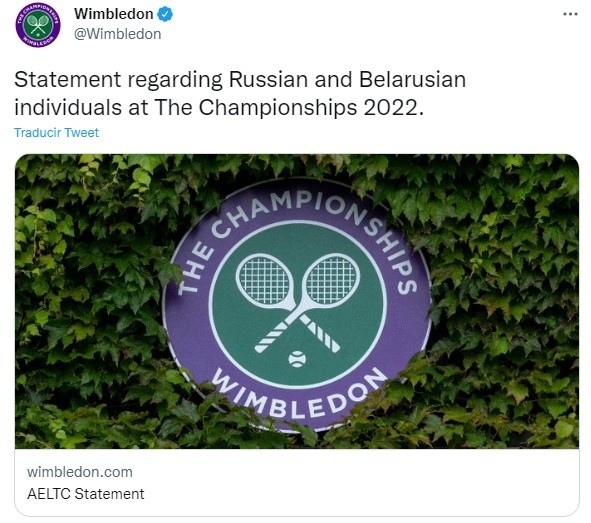 El origen del conflictollega por intermedio de una determinación que el propio certamen que se realiza en el All England Lawn Tennis Club realizó. En este caso con la exclusión de los jugadores rusos y bielorrusos (masculino y femenino) debido a la invasión ejercida por el primer país nombrado a Ucrania. Nombres a resaltar son los del hoy número 2 del mundo,Daniil Medvedev, además deAnastasia Pavlyuchenkova(21°), sumado a lasbielorrusas Aryna Sabalenka (7°) y Victoria Azarenka (15°).