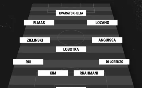 Luciano Spalletti debertá retocar la delantera ante las bajas de Osimhen y Simeone. Napoli responderá con Alex Meret;Giovanni Di Lorenzo, Amir Rrahmani, Kim Min-Jae, Mario Rui; Zambo Anguissa, Stanislav Lobotka, Piotr Zielinski; Hirving Lozano, Khvicha Kvaratskhelia, Elif Elmas.
