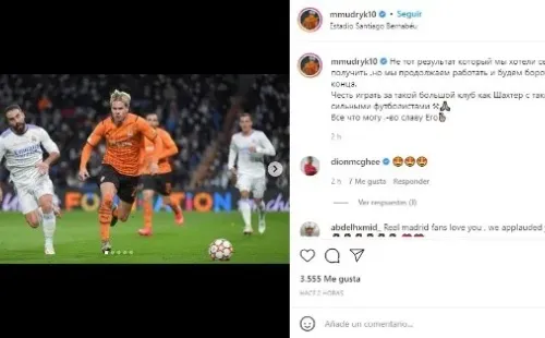 Claro está que en el compromiso, un hombre del elenco ucraniano encantó y se llevó los aplausos de la afición madridista cuando fue sustituido al minuto 71. Se trata de Mijailo Mudryc, futbolista ucraniano de 20 años, que tiene una calidad envidiable por eso la reacción del respetable en la capital española.