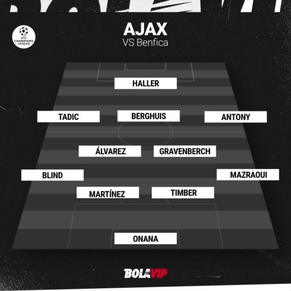 Ajax: Onana; Blind, Martínez, Timber, Mazraoui; Gravenberch, Álvarez o Klaassen; Tadic, Berghuis, Antony dos Santos; Haller.
