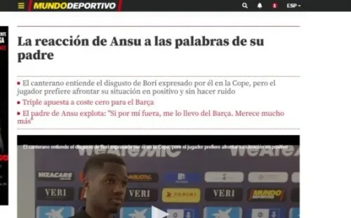 “A mí me molesta lo que está pasando. Es el ’10’, el futbolista franquicia. Ha cogido el dorsal cuando nadie estaba para cogerlo…Si por mí fuera, me lo llevo del Barça. Merece mucho más…Yo estoy enfadado como padre y lo que me molesta es que Ansu juegue tan pocos minutos. Estamos hablando del ’10’ del Barça”, algunas de las frases de Bori Fati en COPE que por supuesto, abren un nuevo panorama en cuanto al futuro de última gran creación de La Masía.