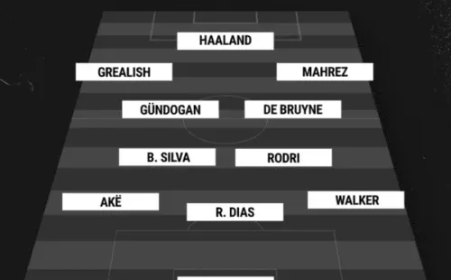 Ederson; Walker, Rúben Dias, Ake; Rodri, Bernardo Silva; Mahrez, De Bruyne, Gundogan, Grealish; Haaland