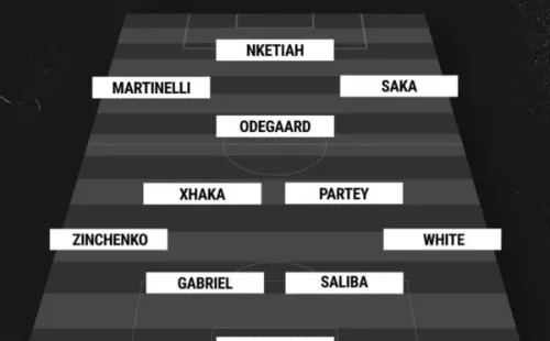 Ramsdale; Ben White, Saliba, Gabriel Magalhaes, Zinchenko; Partey, Xhaka; Saka, Odegaard, Martinelli; Nketiah.