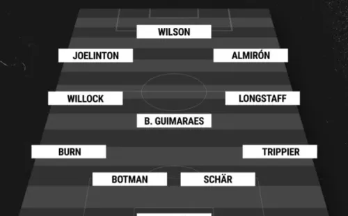 Pope; Trippier, Schar, Botman, Dan Burn; Longstaff, Guimaraes, Willock; Almiron, Wilson, Joelinton.