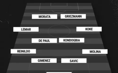 Jan Oblak, Nahuel Molina, Stefan Savic, Jose Gimenez, Reinildo;Koke, Geoffrey Kondogbia, Rodrigo de Paul, Thomas Lemar;Antoine Griezmann y Álvaro Morata.