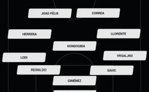 El Cholo Simeone hará algunos cambios con respecto a la última formación usada en LaLiga. Atlético de Madrid formará con Oblak; Vrsaljko, Savic, Giménez, Reinildo, Lodi; Llorente; Kondogbia, Herrera; Correa, Joao Félix.