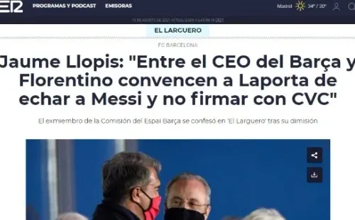 Llopis no se mordió la lengua al asegurar que existen intereses de un importante tamaño económico en el adiós del 10: “Entre el CEO y Florentino Pérez convencen a Joan Laporta de que tiene que echar a Lionel Messi. A Laporta le convencen Ferran Reverter, el nuevo CEO, de que no se puede firmar con CVC, y Florentino Pérez con el proyecto de la Superliga Europea”.