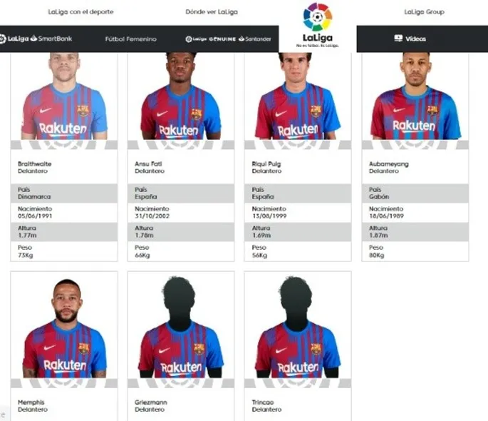 Basta con meterse a la web de LaLiga para darse cuenta que a 3 de agosto, Barcelona no cuenta en su plantilla apta para disputar los encuentros de LaLiga con Robert Lewandowski, Raphina, Andreas Christensen, Frank Kessie o Jules Koundé. Si aparecen otros nombres a los que se le busca salida como Memphis Depay, Martin Braithwaite o Frenkie De Jong, quienes de momento con su decisión de negarse a dejar el Camp Nou bloquen la inscripción de los primeros.