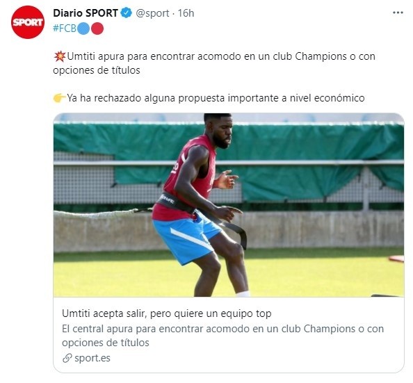 Sport afirma que el galo parece haber asumido que no seguirá siendo Culé y que en el club, están convencidos de poder conseguirle una salida digna tras 5 años dentro de la institución. Umtiti ha trabajado desde el inicio de la pretemporada sabiendo que salvo un giro de 180 grados, no seguiría en Barcelona. ¿Podrá Laporta saciar sus pretensiones para abandonar Cataluña?