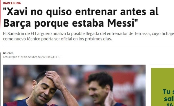 Se viven horas decisivas en el futuro de un Xavi Hernández que tiene todo acordado con Barcelona. El ex jugador será el nuevo capitán de un barco a la deriva que espera recuperar su sitio en la élite del fútbol mundial. En medio tanta expectativa, desde España aseguran que el Terrassa no fue entrenador del equipo antes por la presencia de Lionel Messi.