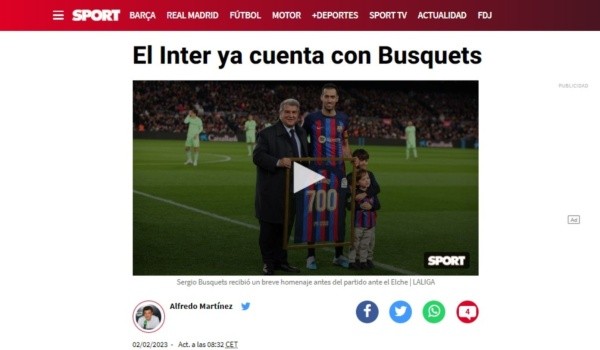 El diario catalán desvela que las intenciones del fútbol norteamericano por llevarse a un campeón del mundo como Busquets están lejos de haberse frenado. Su nivel en el Camp Nou, el deseo de seguir potenciando la MLS y la marca Beckham detrás, un cóctel que lleva a Sport a marcar que el capitán culé ya se encuentra en la planificación del Inter de Miami a partir del 1 de julio.