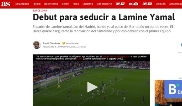 Diario AS y Mundo Deportivo son los responsables de una información que genera expectativas en Barcelona, que no debería prender las alarmas a corto plazo, pero que igualmente muestra todos los retos que tendrá el conjunto culé a lo largo de los próximos meses de julio y agosto. Lamine Yamal futbolista más joven en debutar con el primer equipo Blaugrana, acaba contrato el próximo 30 de junio.