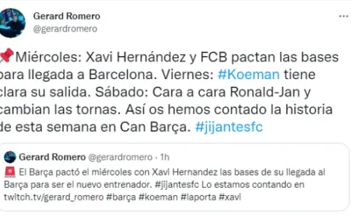 Además, el periodista dio detalles sobre cómo fue la secuencia y explicó que el miércoles se arregó con el exmediocampista, el viernesKoeman tenía clara su salidad, pero una reunión entre Laporta y el neerlandés cambió la situación, previo al duelo ante Atlético de Madrid.