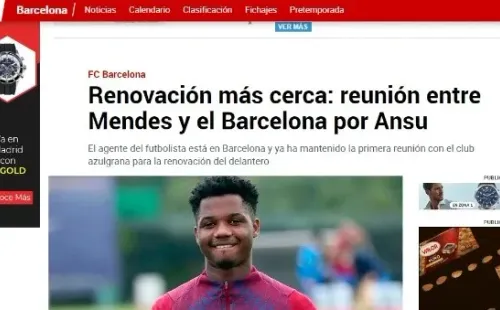 MARCA asegura que Jorge Mendes, agente del punta de apenas 18 años, se encuentra en Barcelona y ya tuvo la primera reunión con Joan Laporta de cara a cerrar una renovación de contrato que extiende el vínculo del jugador con el club más allá del 2022. Ansu Fati será agente libre en apenas dos meses y medio, por lo que se viven horas decisivas de cara a saber que va a pasar con su futuro.