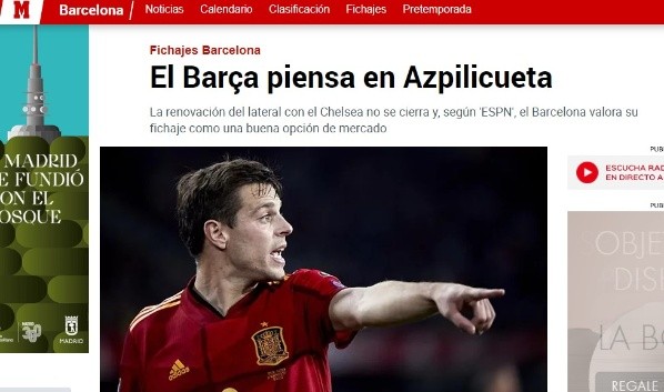 Primero fue ESPN quien comentaba que Barcelona sigue muy de cerca el futuro de César Azpilicueta. El capitán del Chelsea es uno de esos jugadores del equipo de Thomas Tuchel que no termina de renovar su contrato en Stamford Bridge junto a Rudiger. Consientes que en apenas 45 días será agente libre, en el Camp Nou estudian la forma de quedarse con un navarro que también se ha ganado un puesto en el equipo de Luis Enrique en la selección.