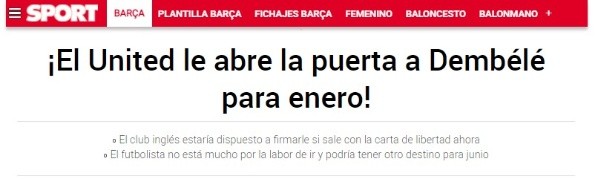 El diario catalán afirma que los Red Devils aceptarían hacerse cargo del Mosquito siempre y cuando Barcelona rescinda su contrato, hecho que complica la operación producto de los más de 15 millones que la entidad debería pagarle a Dembelé por su despido. En cuanto a los Blues de Tuchel, The Sun enfatiza que la única vía que ven en Stamford Bridge para traerle pasa por una cesión hasta final de temporada por un valor de 4 millones de euros, sin opción de compra y donde Chelsea se haga cargo de todo su sueldo.