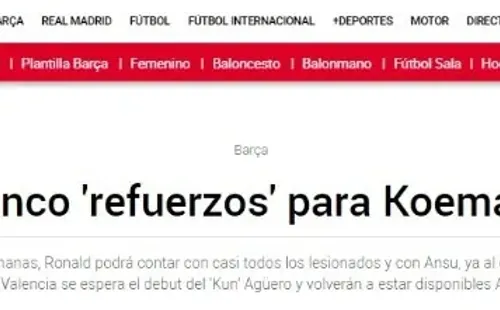 Koeman podrá contar con todos para el choque ante Valencia, encuentro donde por primera vez y salvo que haya una nueva desgracia en los días que vienen, el DT podrá elegir entre todas sus piezas un once que ayude a levantar al equipo del oscuro presente en el que se encuentra inmerso.