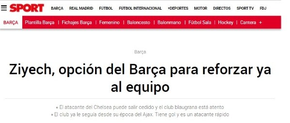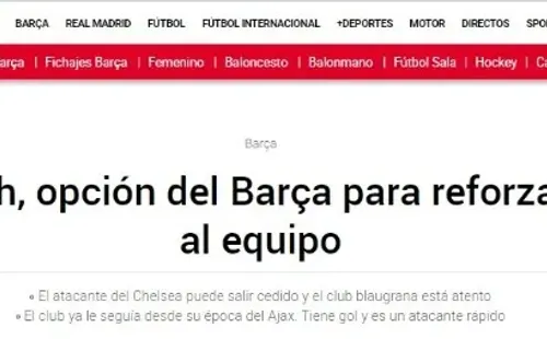 El medio indica que Barcelona buscará en enero hacerse con el préstamo del extremo marroquí Hakim Ziyech. El zurdo sigue sin tener la continuidad que esperaba en Chelsea, quien justamente le arrebató su fichaje a los Culés años atrás cuando el africano jugaba en ese mágico Ajax de Ámsterdam.