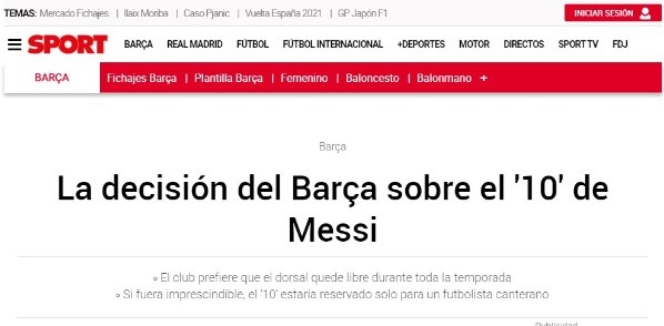 Sport afirma que luego de varias reuniones, el club ha decidido que para la temporada 2021/2022 ninguno de sus jugadores asuma el peso de llevar la 10 de Lionel en su espalda. La herencia de ese dorsal luego de lo que fue la salida de Messi sería demasiada responsabilidad para un jugador ajeno a la ideología del Barcelona en lo que es uno de los momentos más críticos de la institución en todos sus frentes.