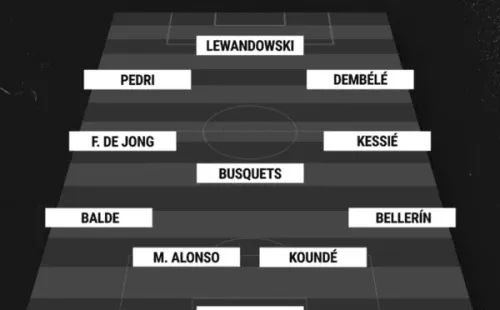 Con la premisa de ganar sea como sea, el once titular de Barcelona tiene a Marc-André Ter Stegen; Héctor Bellerín, Jules Koundé, Marcos Alonso, Alejandro Balde; Franck Kessié, Sergio Busquets, Frenkie De Jong; Ousmane Dembélé, Robert Lewandowski yPedri.