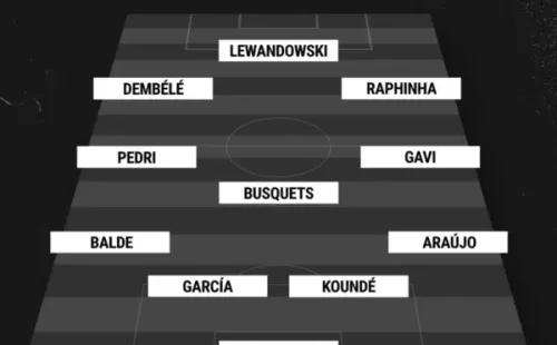 Ter Stegen; Araújo, Koundé, García, Balde; Gavi, Busquets, Pedri; Raphinha, Lewandowski, Dembélé.