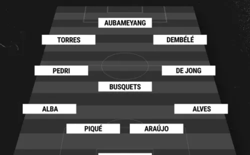 Marc André Ter Stegen; Dani Alves, Ronald Araújo, Gerard Piqué, Jordi Alba; Frenkie de Jong, Sergio Busquets, Pedri; Ousmane Dembelé, Aubameyang y Ferran Torres son los elegidos por Xavi Hernández para buscar tres puntos que confirmen el buen momento de un Barcelona que no rotará para el choque de la jornada en LaLiga.