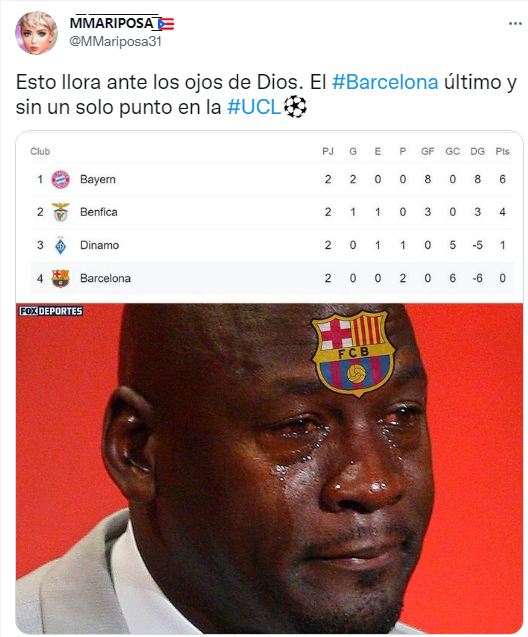 Ronald Koeman quedó en la cuerda floja como entrenador del Barça, que se ubica último en la zona sin haber sumado puntos, ni haber anotado en sus dos partidos. Las redes sociales no tuvieron piedad, se rieron el momento del equipo y destacaron la posibilidad de que jueguen la Europa League, pero no se olvidaron de la derrota de Real Madrid del martes ante Sheriff.
