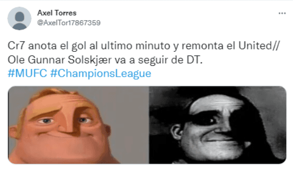 El portugués tuvo un partido discreto, pero mostró su poderío en la última jugada para el 2-1 definitivo. Las redes resaltaron las reacciones del público, su físico a los 36 años y le pegaron a Solskjaer, que compra tiempo en el cargo de entrenador con el triunfo.