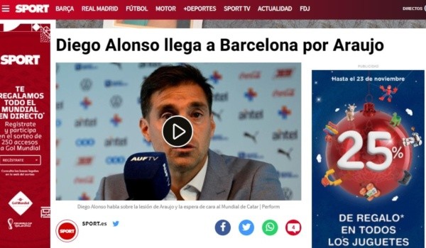 Tal y como desvelan desde Sport, el entrenador de la selección uruguaya de fútbol ha desembarcado por Barcelona en las últimas horas con el fin de reunirse con los médicos del conjunto culé y con un Ronald Araújo que más pronto que sabrá si puede estar en la Copa del Mundo. Semanas atrás y sin titubeos, Alonso anunciaba que todos pondrán de su parte para que dicho hecho sea una realidad: “Está en ese proceso de recuperación, viene muy bien y la información que tenemos es buena. Lo vamos a esperar hasta el final”.