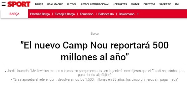 “Con el nuevo Estadi tendremos unos ingresos de 500 millones, un 67% más. De esos 200 adicionales, con un tercio, seremos capaces de pagar la amortización y los intereses del dinero que nos dejarán los inversores durante los próximo 35 años”, finalizaba Llauradó sobre los beneficios que pretende generar el club con el nuevo Camp Nou. ¿Lo harías ahora?