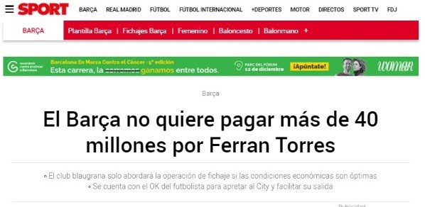 25 millones le costó a Pep ese extremo que de la mano de Luis Enrique en la selección española enamora a propios y extraños. Ferrán se ha convertido en la cara de la Roja en el extranjero con presentaciones cargadas de goles y verticalidad que han convencido a Xavi de apostar por su nombre. Dicho esto, las sumas que se manejan en Sport hacen pensar que la operación está lejos de concretarse.