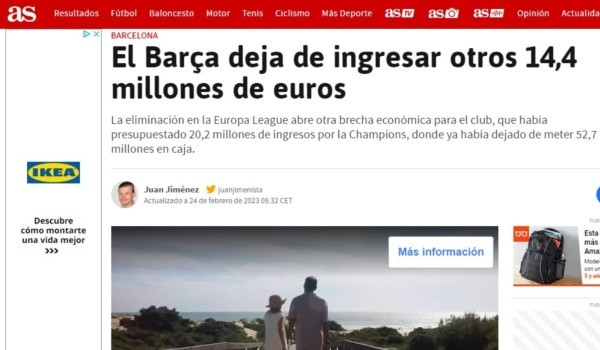 Las cuentas son más que claras por estas horas para medios como MARCA o AS: Barcelona tendrá que reducir el límite salarial y el Coste de su Plantilla para la próxima campaña en sumas cercanas a los 200 millones de euros, pero es que habrá que contabilizar igualmente de cara a saber cuanto se puede comprar, esos premios que se escaparon anoche con una caída en Old Trafford que supone perder mucho dinero.
