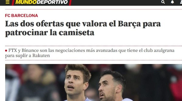 Correcto, Barcelona se encuentra en negociaciones más que avanzadas con Binance y FTX, dos empresas con distintos productos pero por encima de todos relacionadas con el mundo de las criptomonedas. Hasta el momento serían las únicas en aceptar su legada al Camp Nou por 60 kilos en cada campaña y si bien se espera por más interesados en quedarse con el lugar de Rakuten, en Mundo Deportivo aseguran que urge cerrar todo lo antes posible.