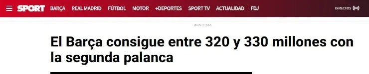 Diario Sport asegura desde la ciudad condal que el conjunto culé recibirá en sus cuentas una cifra de entre 320 y 330 millones de euros, con 400 millones de plusvalía que pondrán final a varias de las novelas en el mercado culé. Joan Laporta ha ganado una carrera contra el tiempo donde ahora será clave aligerar la plantilla y rebajar así un límite salarial que se convierte ahora mismo en el máximo adversario a vencer.