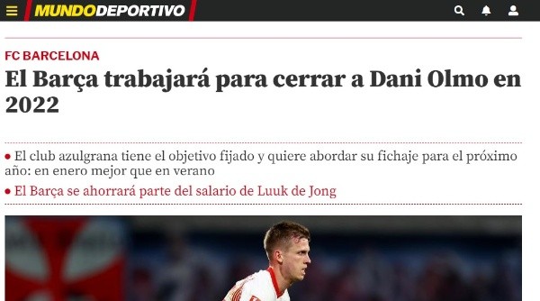 El medio apunta que el jugador quiere regresar a la que fue su casa durante varios años. Incluso, aseveran que previo a ofrecer dichos millones al Leipzig, Olmo aceptó el contrato propuesto por Barcelona con la esperanza de que los clubes llegasen a un acuerdo. Laporta y Koeman seguirán buscando jugadores para ese 4-3-3 que la dirigencia pretende instalar en el Camp Nou y para conseguirlo, buscarán ir ganándose a la directiva de Red Bull para tener un privilegio a la hora de negociar el traspaso en verano de 2022.