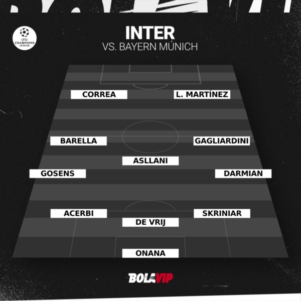 Onana; Skriniar, De Vrij, Acerbi; Darmian, Gagliardini. Asllani, Barella, Gosens; Martinez y Correa.
