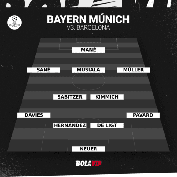 Manuel Neuer; Benjamin Pavard, Dayot Upamecano, Lucas Hernández, AlphonsoDavies; Joshua Kimmich, Marcel Sabitzer; Thomas Müller, Jamal Musiala, Leroy Sané y Sadio Mané sonlos once que saca Julian Nagelsmann para dar otro golpe de autoridad en el grupo más atractivo que puede encontrarse ahora mismo en la UEFA Champions League.