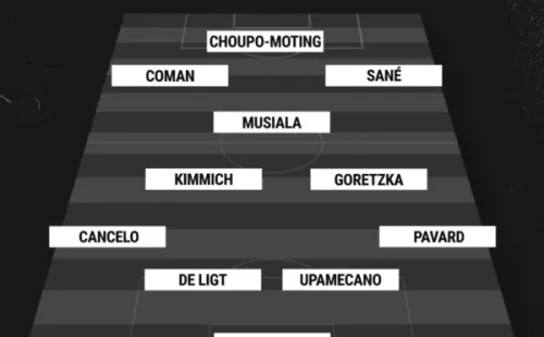 Y. Sommer; B. Pavard, D. Upamecano, M. De Ligt, Joao Cancelo; J. Kimmich, L. Goretzka; K. Coman, Jamal Musiala, L. Sane y Choupo-Moting, los nombres que pone ahoramismo Thomas Tuchel para buscar una remontada histórica en el Allianz que permita a los Bávaros seguir soñando con la Bundesliga.