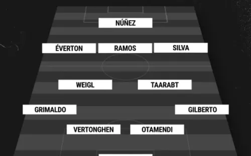 Vlachodimos; Gilberto, Otamendi, Vertonghen, Grimaldo; Weigl, Taarabt; Éverton, Gonçalo Ramos, Rafa Silva;Darwin Núñez.