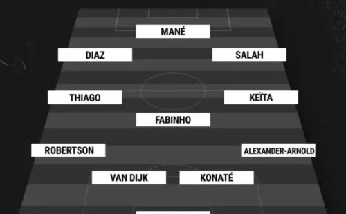 Alisson; Alexander-Arnold, Konaté, Van Dijk, Robertson; Keïta, Fabinho, Thiago Alcántara; Salah, Mané y Luis Díaz.