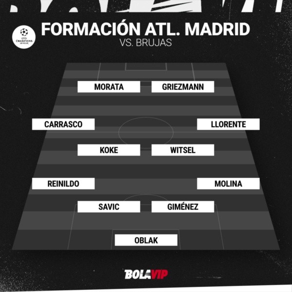 Vuelve la UEFA Champions League para comenzar la recta final de una fase de grupos que tendrá que ser completada antes de Qatar 2022 y que comenzará desde mañana su jornada número 3. Brujas y Atlético de Madrid se miden en Bélgica en un choque clave para los intereses de Diego Pablo Simeone. Estas son lasformaciones para el choque.