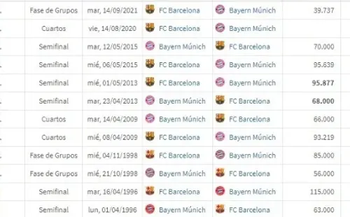 Será la ocasión número seis que los Culés disputen un encuentro oficial en la casa del Bayern y hasta aquí la ecuación es clara: solo 2 puntos de 15 posibles. Barcelona tan solo pudo irse sin ser derrotado de Múnich en 1996 y 2009, donde sendos 2-2 y 1-1 marcan lo que son las únicas ocasiones donde los blaugranas han salidos vivos de Baviera. Para meterse en octavos en final, habrá que romper con la historia en unas horas.