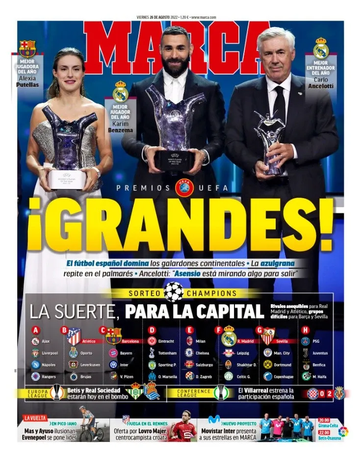 Estambul se encuentra un poco más cerca, Karim Benzema y Carlo Ancelotti fueron premiados, el sorteo tuvo su lugar y todo se encuentra armado de cara a una nueva edición de la UEFA Champions League. Los 32 mejores equipos del viejo continente ya conocen su camino tras unos emparejamientos que dejaron claras reacciones y portadas en la prensa europea.