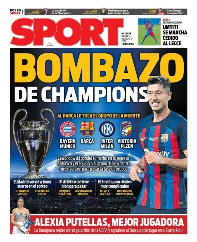 “La suerte, para la capital…Los mejores…Brutal…Bombazo de Champions”, los titulares de medios como MARCA, AS, Sport y Mundo Deportivo para analizar el resultado de un sorteo donde lo que ocurra entre Barcelona, Bayern Múnich e Inter de Milan acaparará todo en las próximas semanas.