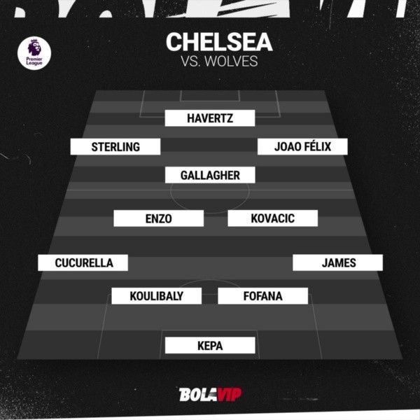 Kepa; James, Wesley Fofana, Koulibaly, Marc Cucurella; Gallagher, Kovacic, Enzo Fernandez; Joao Felix, Havertz, Sterling.