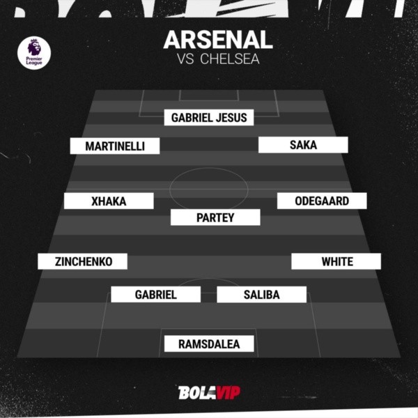 Ramsdale; White, Saliba, Gabriel Magalhaes, Zinchenko; Odegaard, Partey, Xhaka; Saka, Gabriel Jesus, Martinelli.