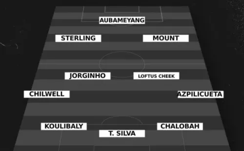 Kepa; Chalobah, Silva, Marc Cucurella; Azpilicueta,Loftus-Cheek, Jorginho, Chilwell; Sterling, Mason Mount; Aubameyang.