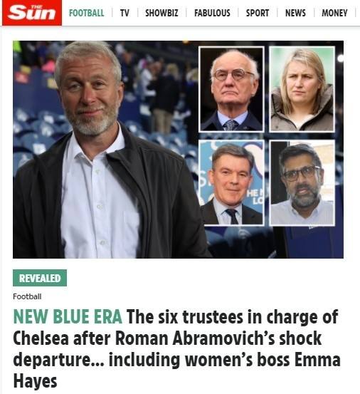 Bruce Buck, Emma Hayes, John Devine, Hugh Robertson, Paul Ramos y Piara Powar serán quienes hasta nuevo aviso ejerzan como dueños de un Chelsea donde The Sun destaca que el paso al costado de Roman Abramovic no evitará al 100% que el club pueda ser vendido a futuro. Se vienen meses movidos en el seno de Stamford Bridge.