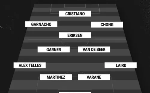 Heaton; Ethan Laird, Varane, Lisandro Martínez, Alex Telles;Donny van de Beek, James Garner; Tahith Chong, Christian Eriksen, Garnacho y Cristiano Ronaldo.